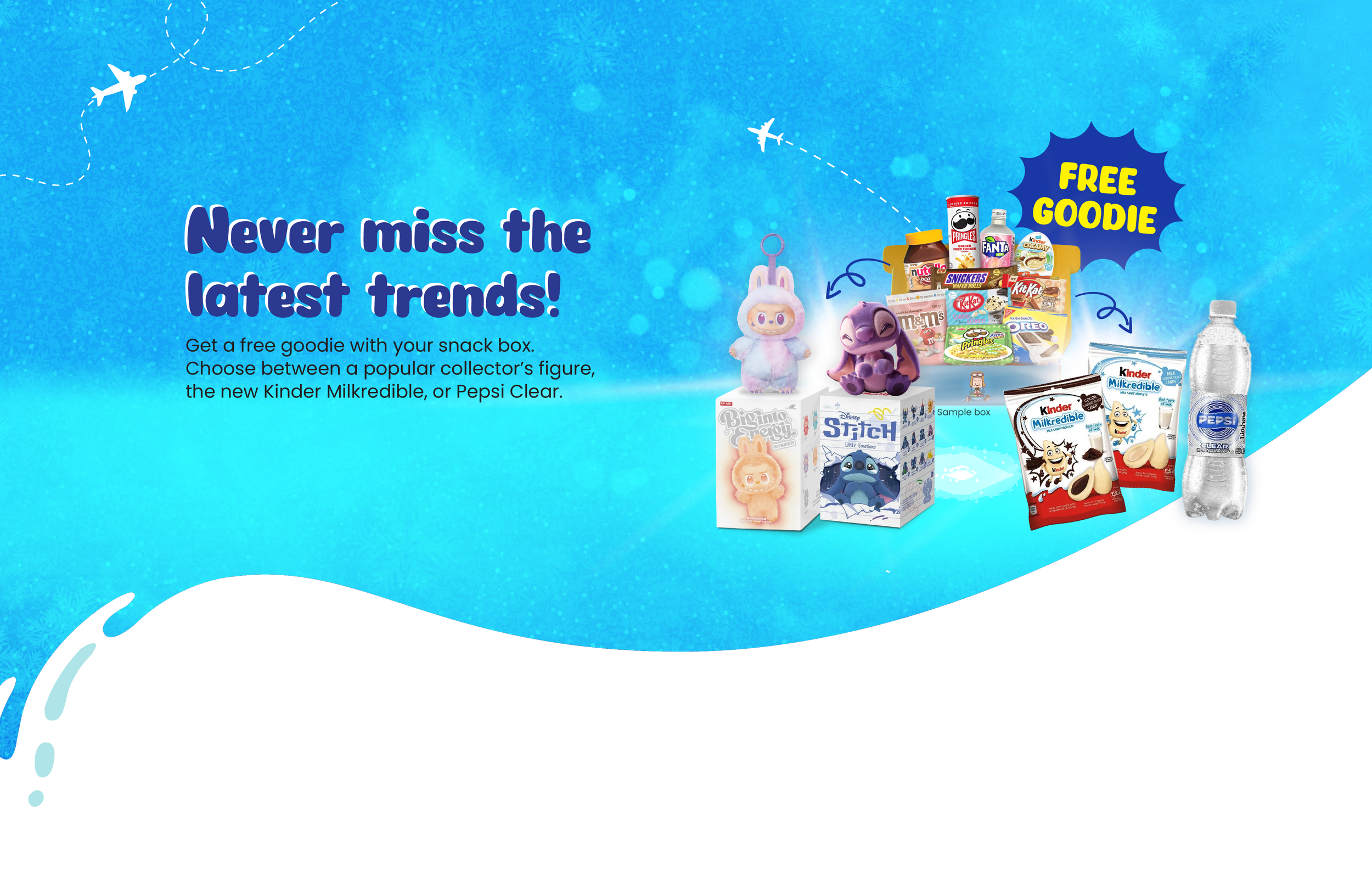 Haal je maandelijkse snacktraktaties van over de hele wereld. Elke maand een nieuw land, nieuwe snacks en een nieuw smakelijk avontuur met exclusieve producten die je niet gemakkelijk kunt vinden in je plaatselijke winkel.